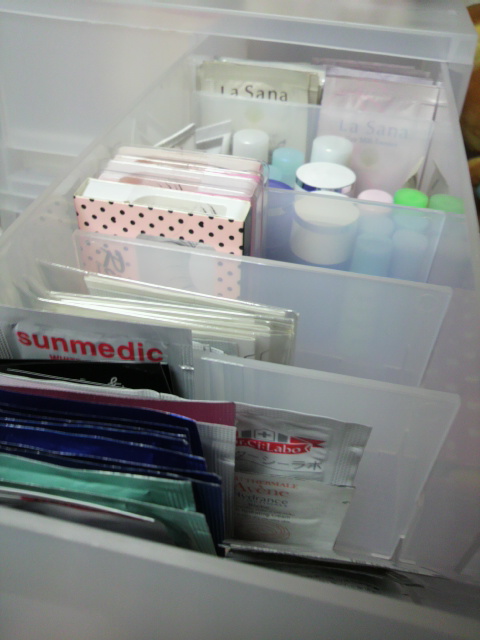 無印のボックスが試供品とか化粧品のストックを入れるのにちょうど良い(^ω^)