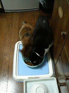 写メは田舎から帰ってきてあんまりにも腹が減りすぎてご飯にとびつく2匹w